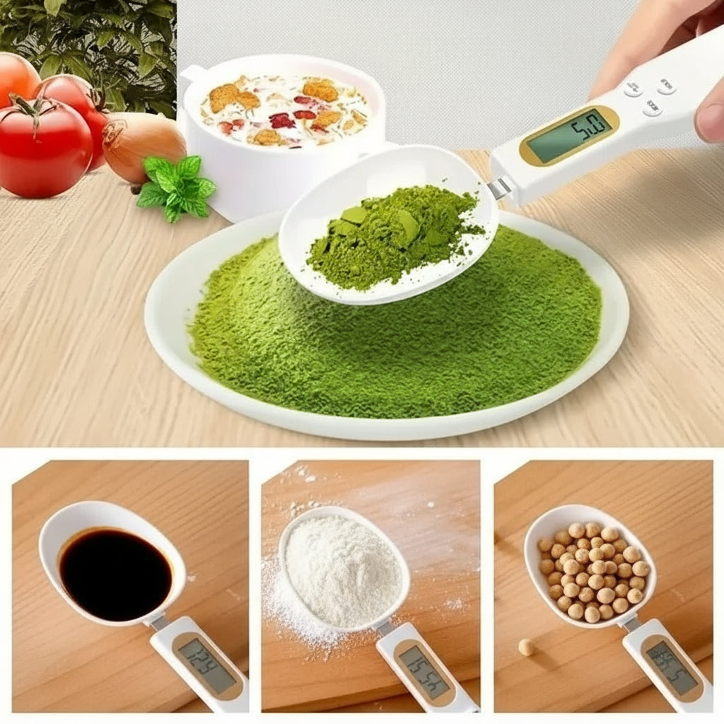 Deze digitale mini weegschaallepel is perfect voor het nauwkeurig afwegen van meel, koffie, melkpoeder, kruiden, suiker of vloeistoffen — allemaal rechtstreeks met één handige lepel.