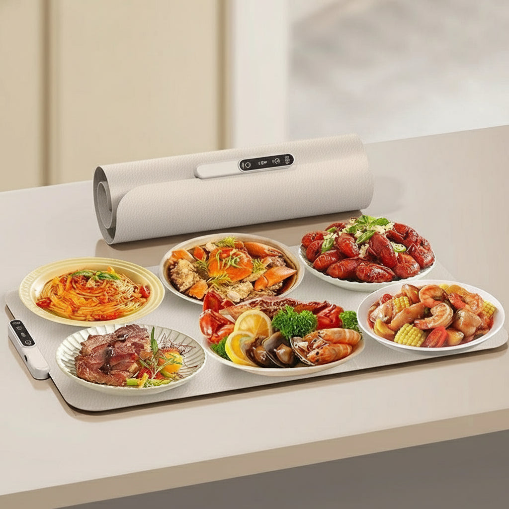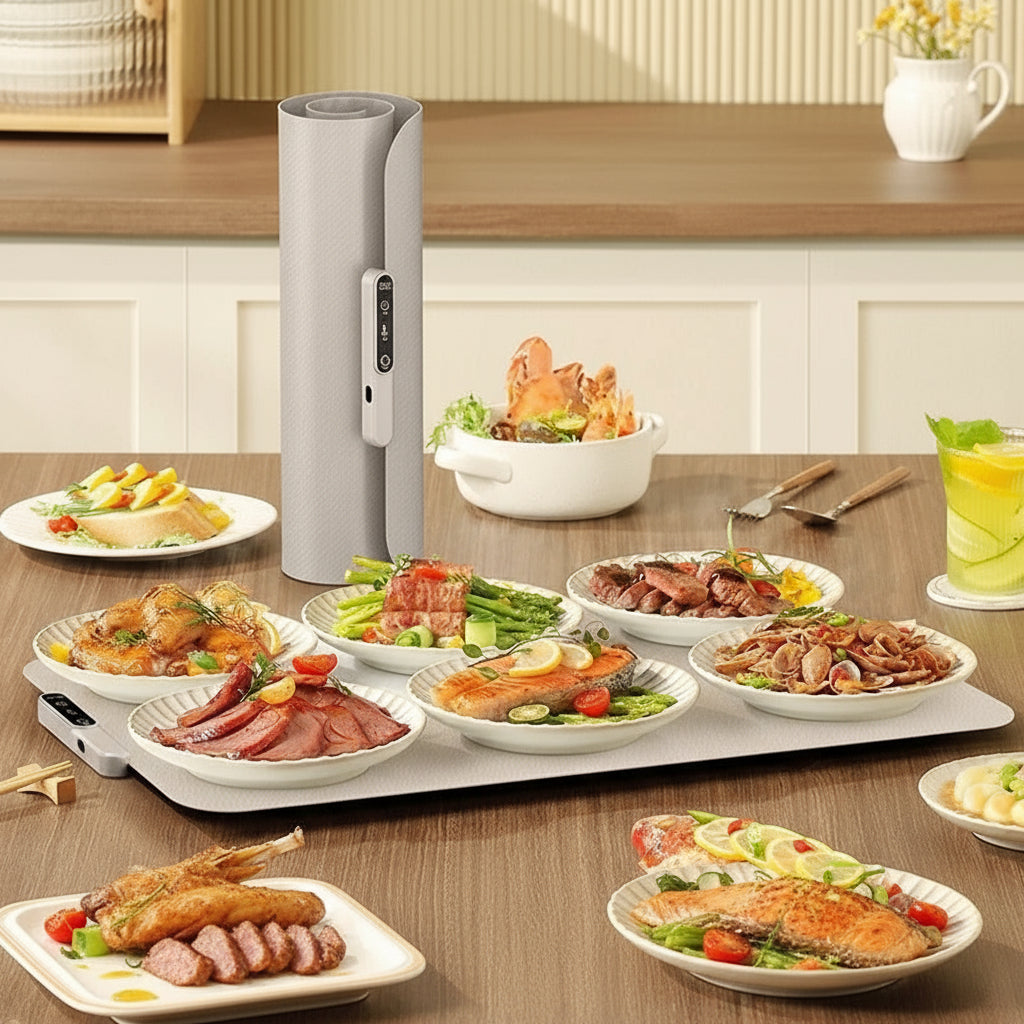 Deze opvouwbare verwarmingsmat zorgt voor een snelle, gelijkmatige opwarming van gerechten, ideaal voor dagelijks gebruik, buffetten, feestjes of in de horeca.